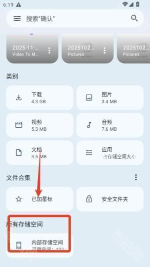 2、进入文件分类界面,可分别查看图片视频等各类文件,长按文件可进行多选操作,支持按时间或大小排序。